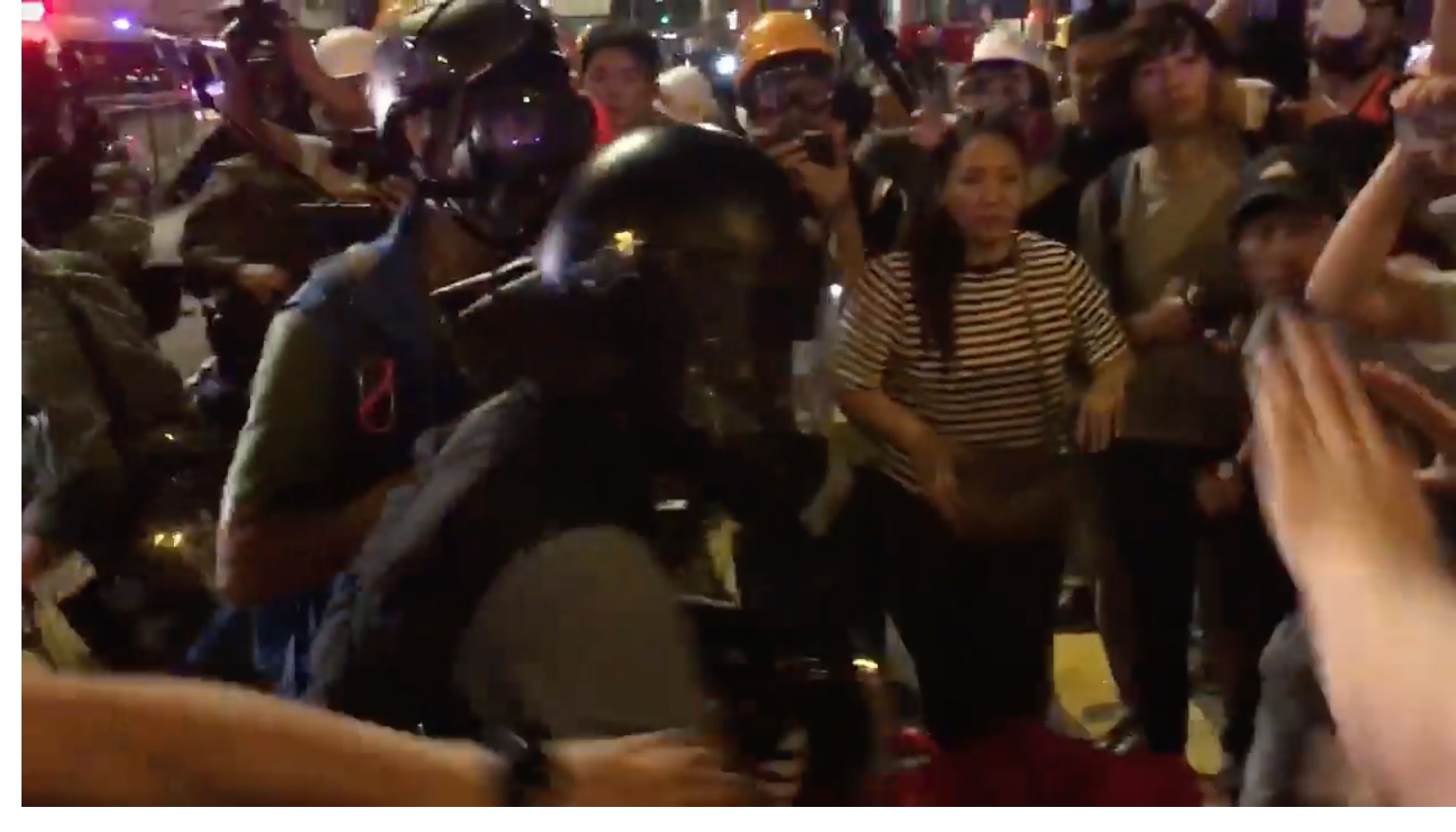 片段中可見,警方在推進時拘捕多位市民,其中一名男警將一名女性拉倒在地,鏡頭後的記者走上前拍攝,其後有警員大聲呼喝及推撞記者。這涉嫌違反警察通例 (39-05),警務人員應盡可能協助新聞媒體工作者的採訪工作。