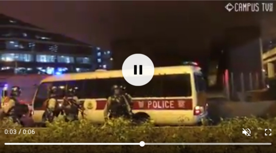 片中0:45秒,現場沒有任何示威者,但仍有記者在拍攝期間被由警察於天台射出的催淚彈擊中頭部。這涉嫌違反《公安條例》第17條中,表明警務人員在阻止公眾聚集舉行,或停止或解散公眾聚集時,只可以使用「合理所需的武力」。