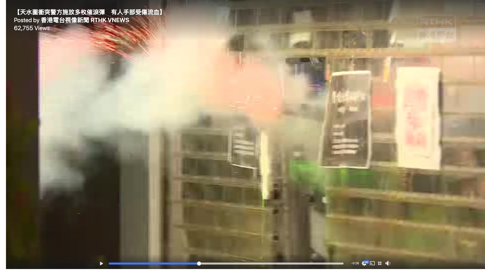 0:00-0:06 秒中,以水平方式發射催淚彈,這涉嫌違反《公安條例》第17條中,表明警務人員在阻止公眾聚集舉行,或停止或解散公眾聚集時,只可以使用「合理所需的武力」。0:00-0:10秒,有警員以閃光照射記者及其攝影鏡頭,涉嫌違反警察通例 (39-05),警務人員應盡可能協助新聞媒體工作者的採訪工作。
