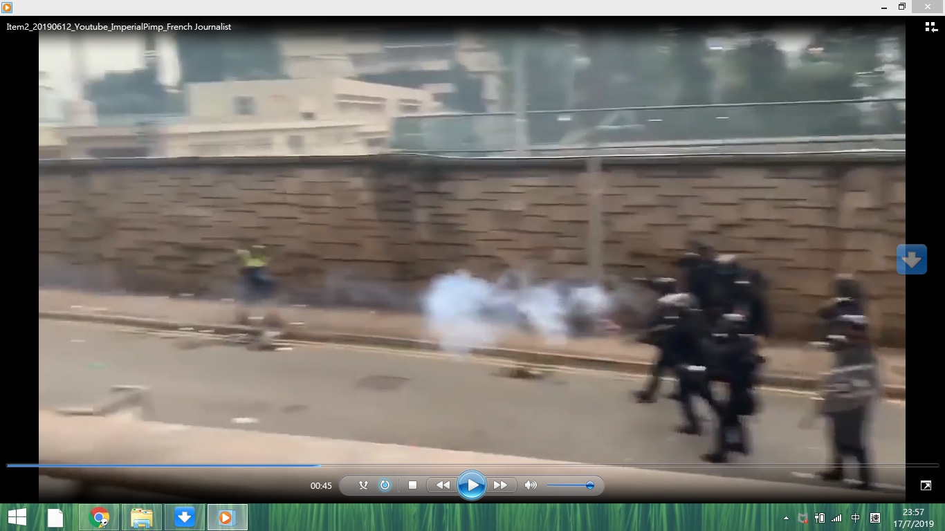 片中可見,警員兩次發射布袋彈(或橡膠子彈)時(影片0分30秒及0分45秒),馬路上並無任何人以及示威者,行人路上只有三名穿黃背心的記者,而三名記者並無阻礙警員工作,亦沒有衝擊警方的防線。警員兩次開槍,這涉嫌違反《公安條例》第17條中,表明警務人員在阻止公眾聚集舉行,或停止或解散公眾聚集時,只可以使用「合理所需的武力」。
