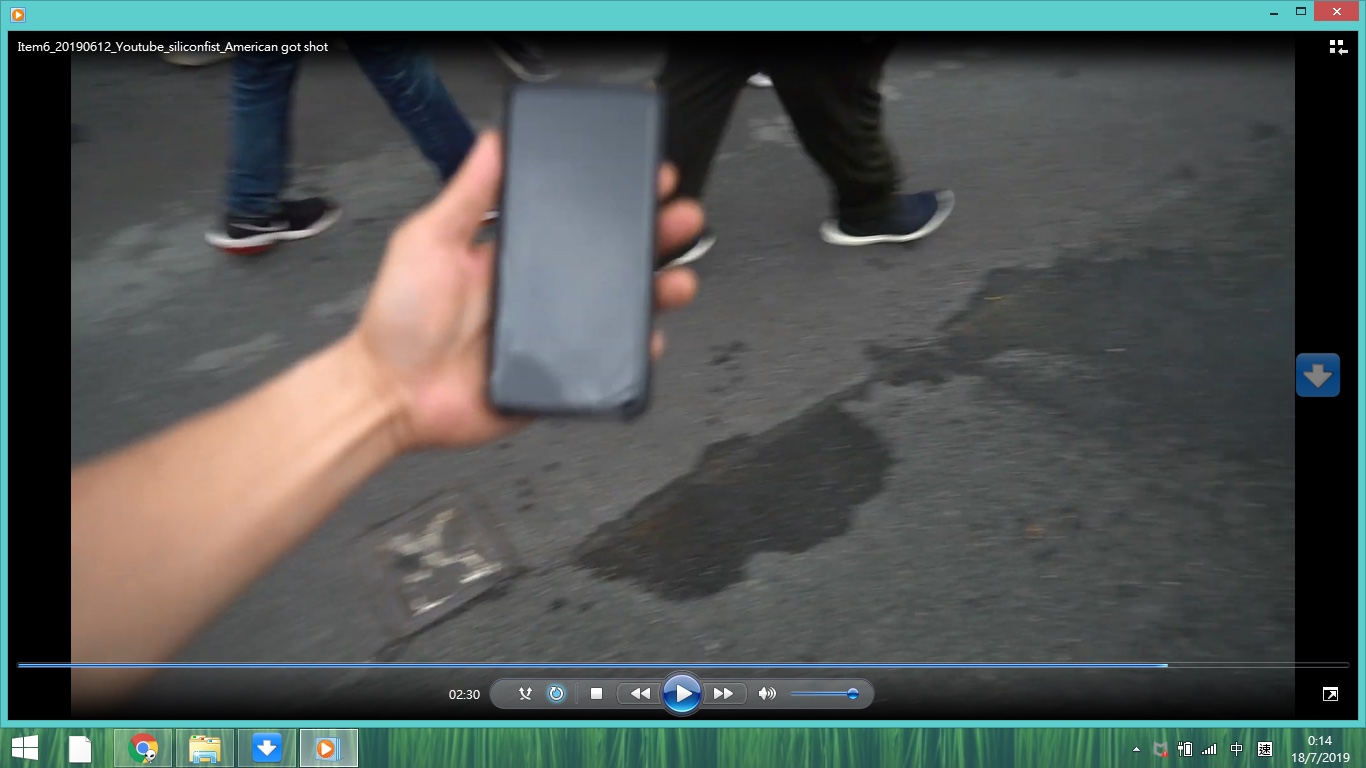 一男子站在天橋上拍攝期間,遭布袋彈(或橡膠子彈)射向大腿,幸好褲袋的電話擋了彈才免於受傷。當時該男子並無攻擊或威脅警察,可見警方開槍前,並沒有按照指引。這涉嫌違反《公安條例》第17條中,表明警務人員在阻止公眾聚集舉行,或停止或解散公眾聚集時,只可以使用「合理所需的武力」。