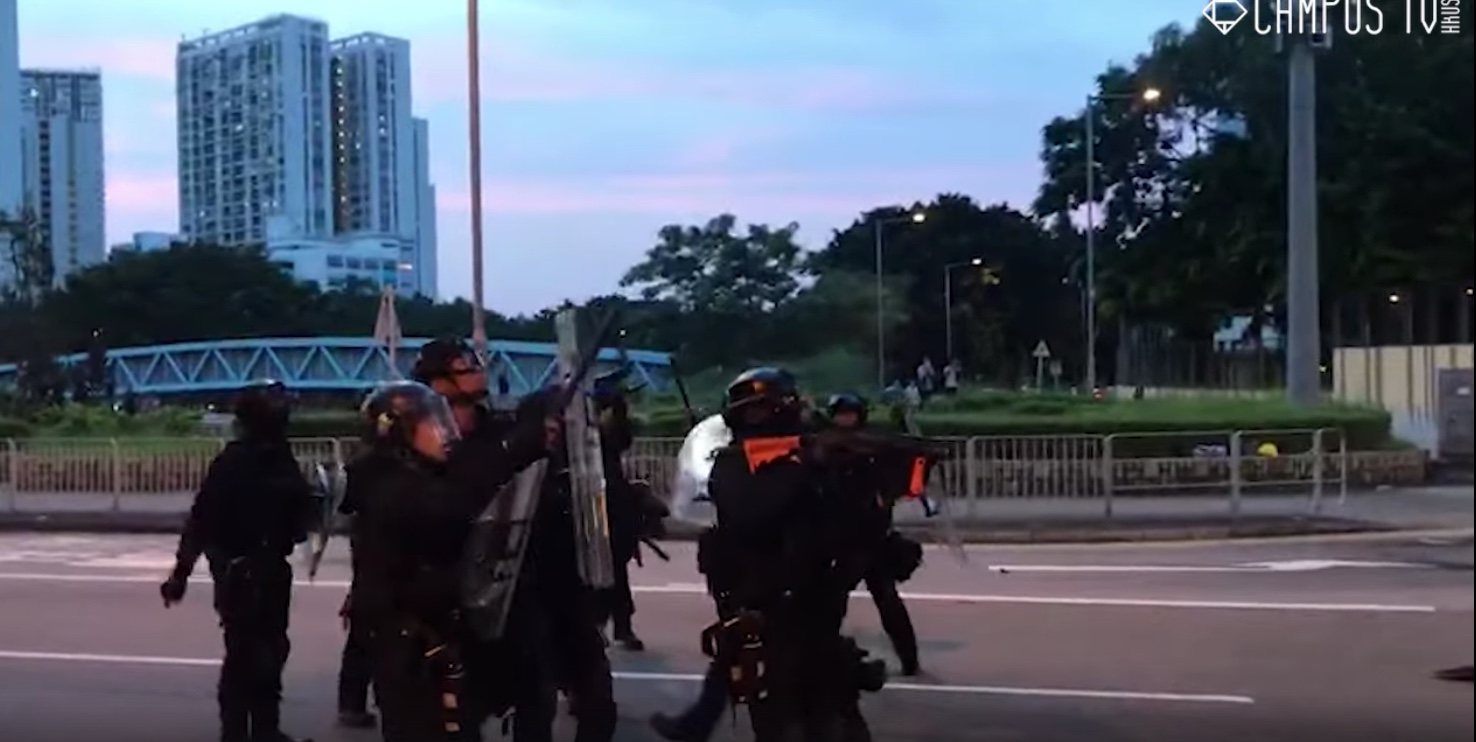 大批示威者在防暴警察盾陣驅散下經天橋離開現場。現場持防暴槍的兩位警員在示威者未有威脅以及並未示出範任何警告下,從馬路向天橋發射催淚彈及開槍。警員在現場並無即時威脅下選擇不展示警告旗幟開槍。這涉嫌違反《公安條例》第17條中,表明警務人員在阻止公眾聚集舉行,或停止或解散公眾聚集時,只可以使用「合理所需的武力」。而過份武力對待被拘捕人士,在沒有合理辨解下,亦可能違反《侵害人身罪條例》各條。