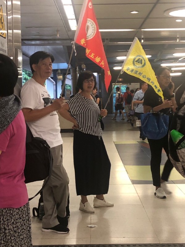 此人(群)係一名撐警藍絲,支持香港警察使用暴力對待市民。佢有份帶領中國遊客參加支持香港警察嘅集會。