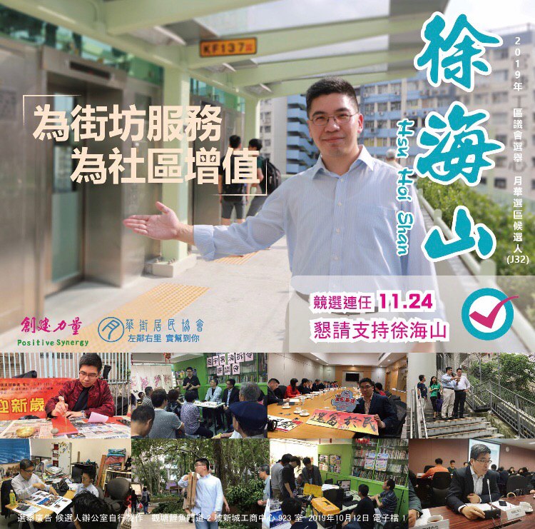 佢曾經代表親中組織出選區議會,詳見下圖:
