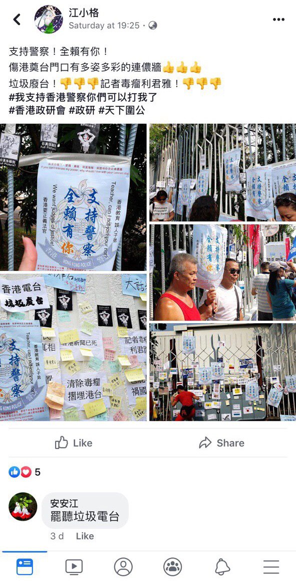 佢曾經係Facebook辱罵手足,又參加包圍香港電台嘅集會。