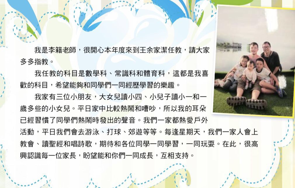 | Occupation | 前浸信會暤明才小學教師(2010年後無做),現時係家庭主婦 |
