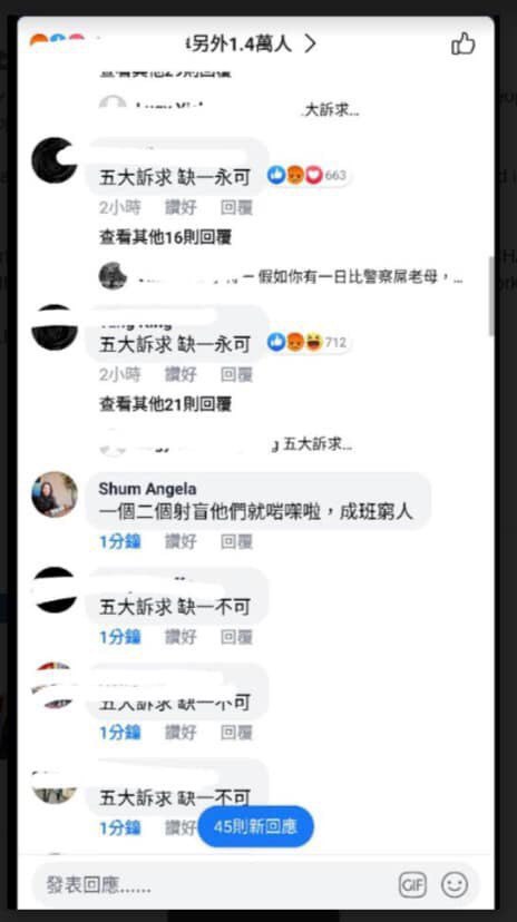 Angela Shum係一名撐警藍絲,支持香港警察濫權濫捕並為此歡呼。