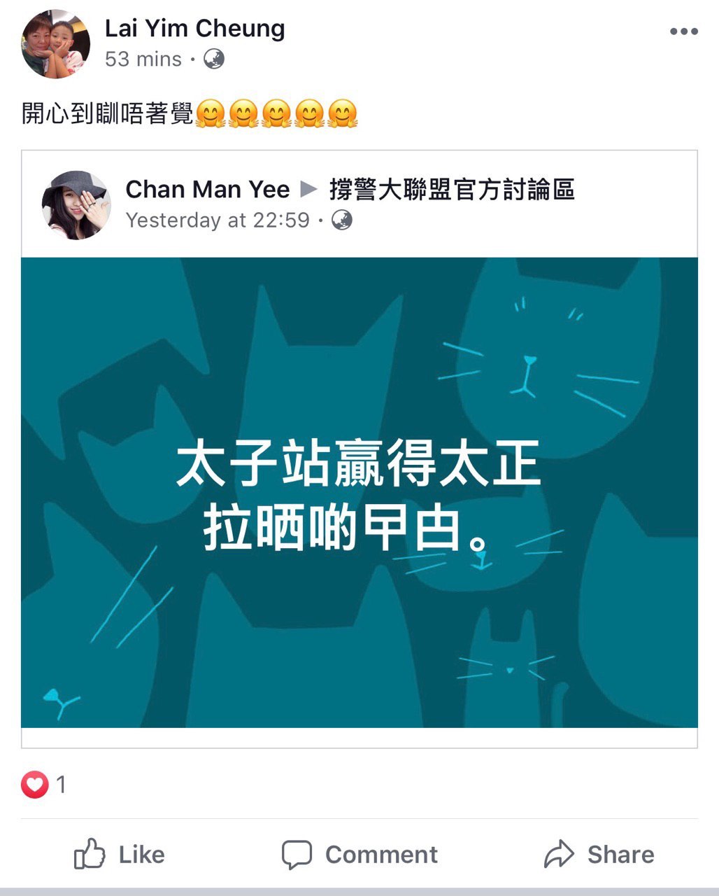 Cheung Lai Yim係一名撐警藍絲,支持香港警察使用暴力對待市民。