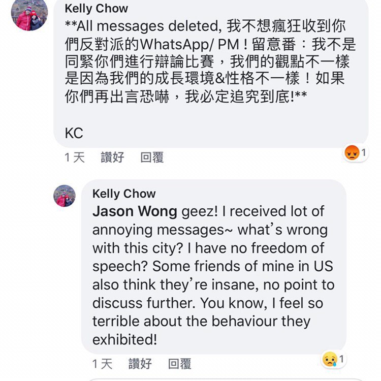 Kelly Chow是親中派的一名成員或支持者。