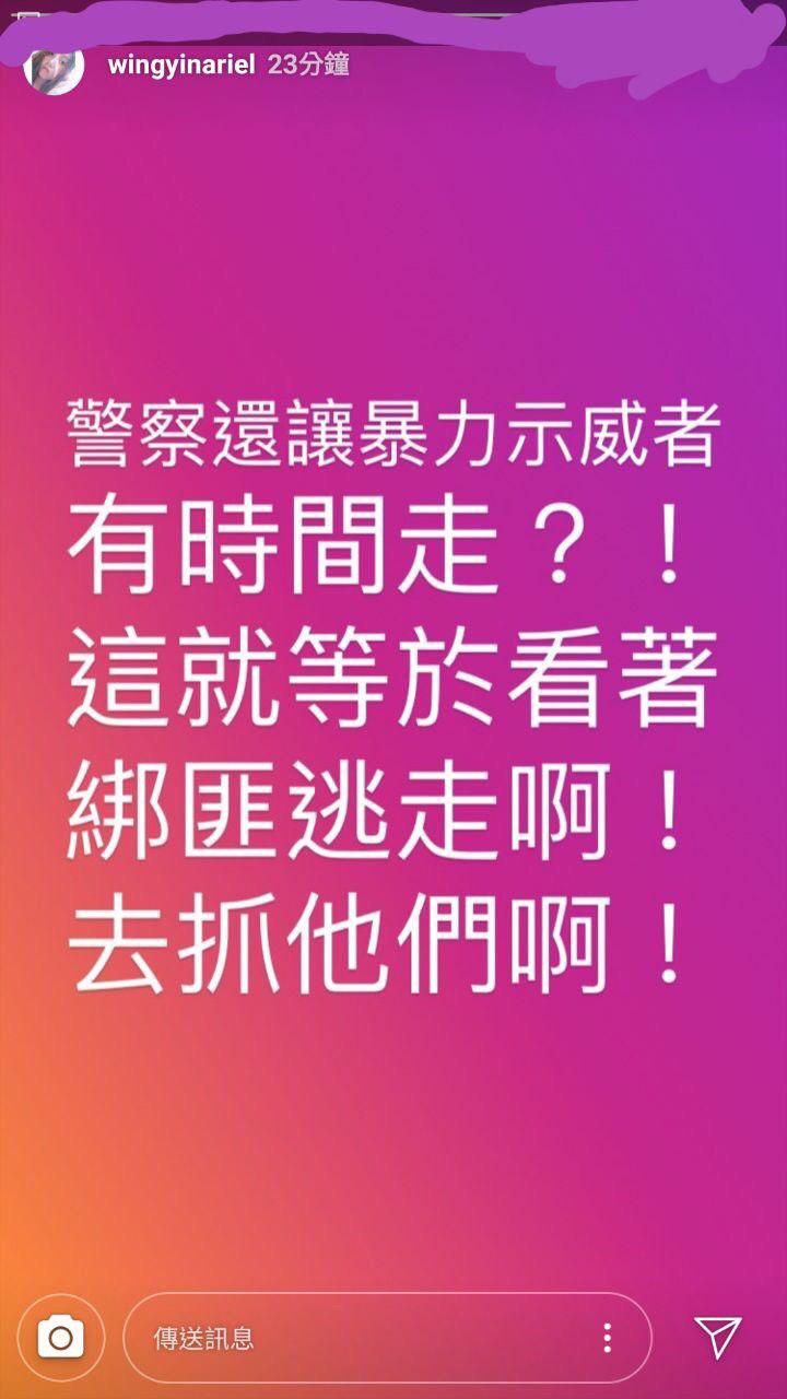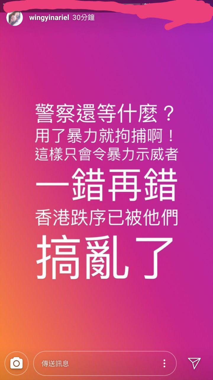 佢曾經係Instagram發表支持香港警察濫權濫捕嘅言論。