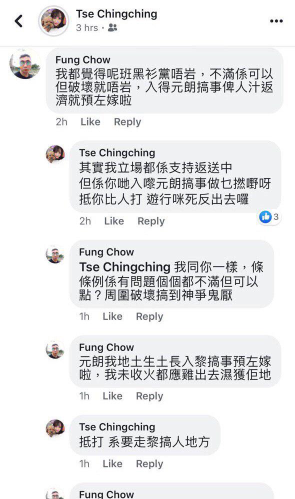 佢曾經轉發支持元朗恐佈份子嘅言論,如下圖: