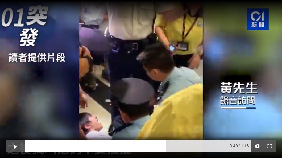 在2019年10月1日16:55,一名急救員被警員拘捕並以武力鎮壓在地,左手手臂被防暴警向後拗。On 1st October, 2019 16:55 A first aider was arrested by police officers and forced to suppress the ground, his left arm was forcefully tilted back by r ...