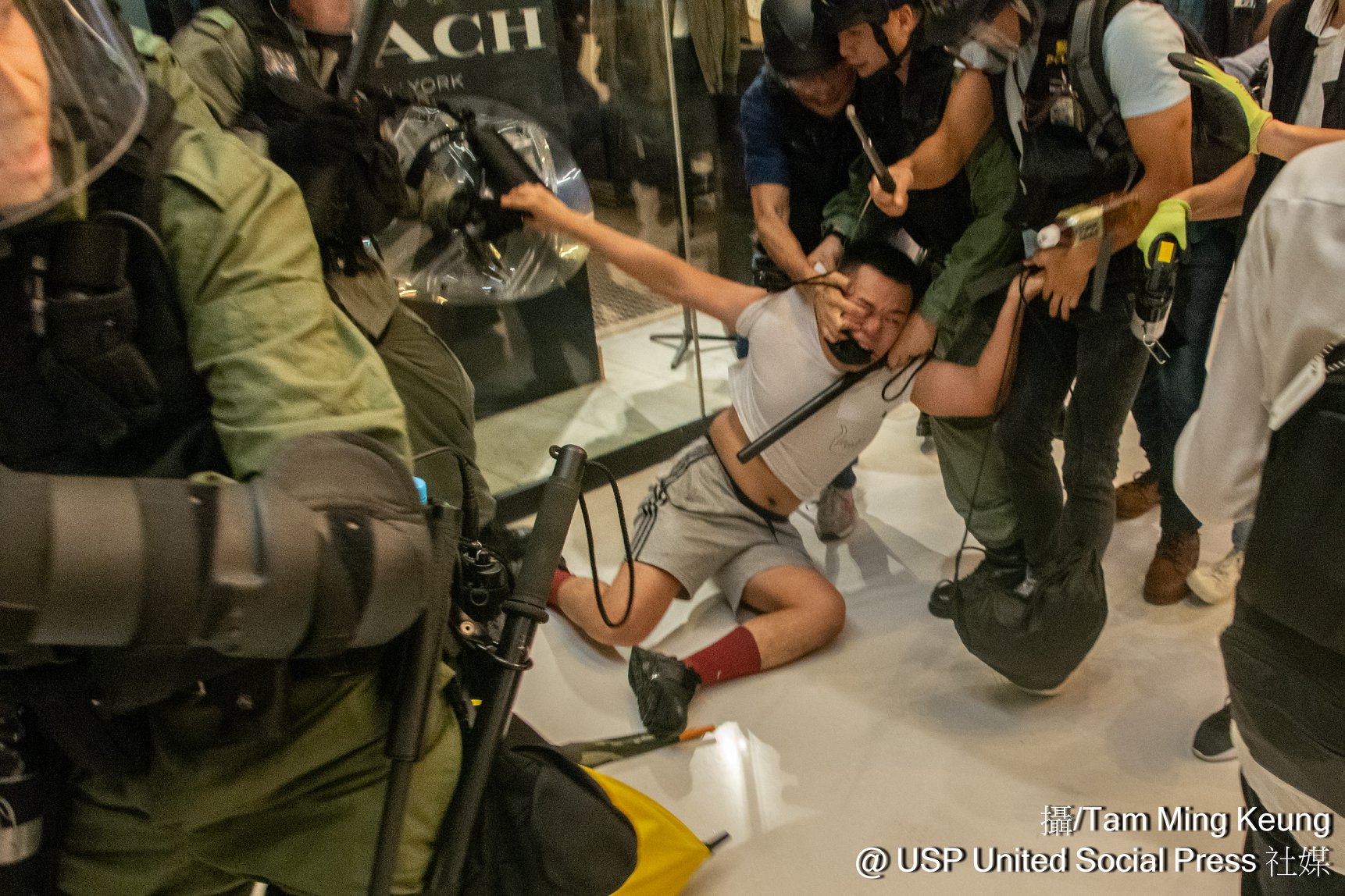 在2019年8月31日晚,過200名防暴警察突然進入太子站內追捕市民,至少有兩男一女被牢牢按在地上。更有便衣警及速龍跑車廂內追打示威者,更用警棍及胡椒噴霧重複襲擊荃灣線一卡車廂內的市民,市民身上沒有裝備,一名市民以縮骨遮抵抗警棍的攻擊,車廂內頓時內充滿市民的尖叫聲。列車曾一度閉門,令現場市民感到不安。車門隨後再次開啟,警員不下十次用手、警棍、甚至月台緊急煞停掣,阻止列車車門關閉,有指揮官在數度敲打 ...