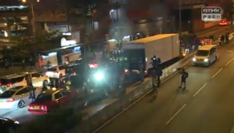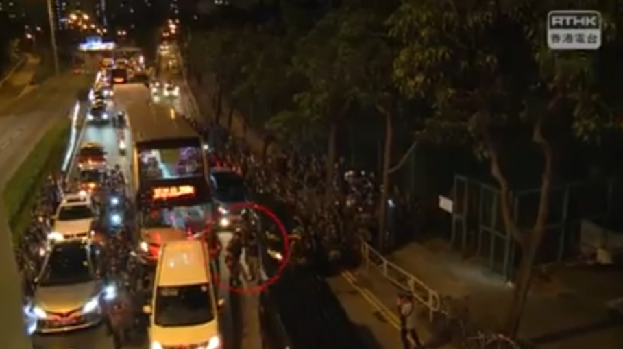 在影片10秒至18秒可見警員在未有警示下向橋上的記者及市民開胡椒彈槍,18秒記者展示手臂疑似受胡椒彈打中。這涉嫌違反《公安條例》第17條中,表明警務人員在阻止公眾聚集舉行,或停止或解散公眾聚集時,只可以使用「合理所需的武力」。而過份武力對待被拘捕人士,在沒有合理辨解下,亦可能違反《侵害人身罪條例》各條。警方以各種手段阻撓記者採訪,涉嫌違反警察通例 (39-05),警務人員應盡可能協助新聞媒體工作者的採訪工作。