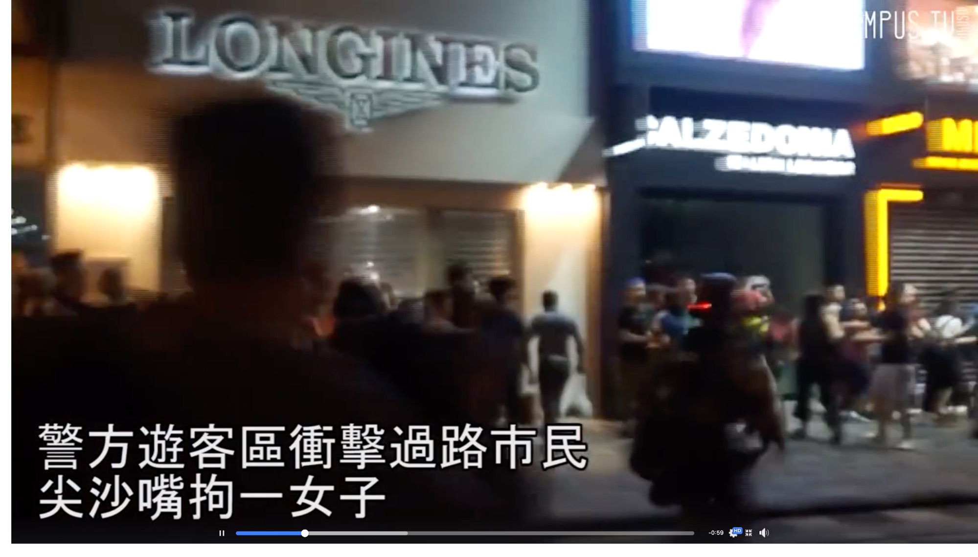 片段中可見,警方在推進時拘捕多位市民,其中一名男警將一名女性拉倒在地,鏡頭後的記者走上前拍攝,其後有警員大聲呼喝及推撞記者。這涉嫌違反警察通例 (39-05),警務人員應盡可能協助新聞媒體工作者的採訪工作。