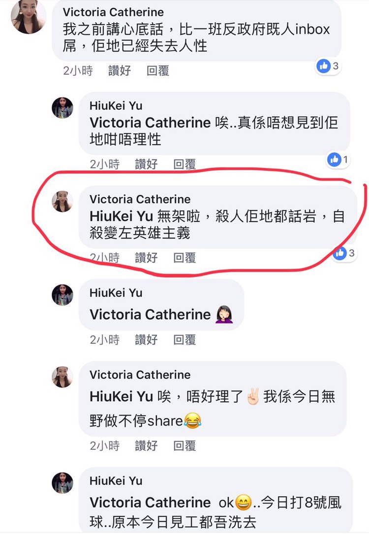 她曾在Facebook上表示自己的親中立場,詳見下圖: