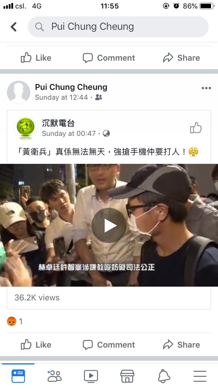 張沛聰係香港警察嘅一份子。佢係2019年6月12日立法會衝突之後,曾經刪去Facebook嘅警察大頭相,及後又分享片段指罵示威者,如下圖: