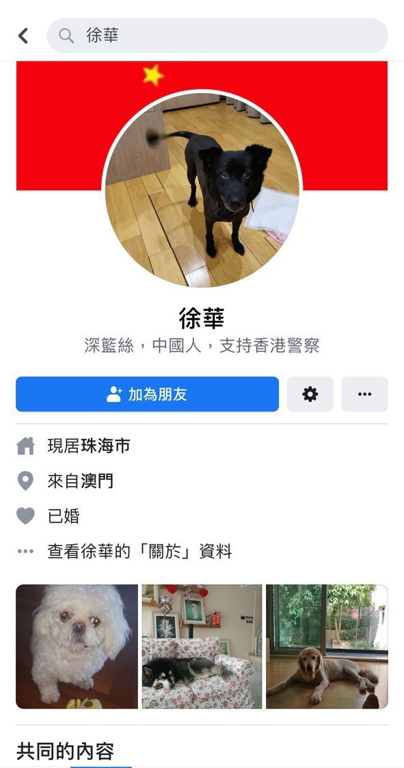 徐華係一名撐警藍絲,支持香港警察虐待示威者。