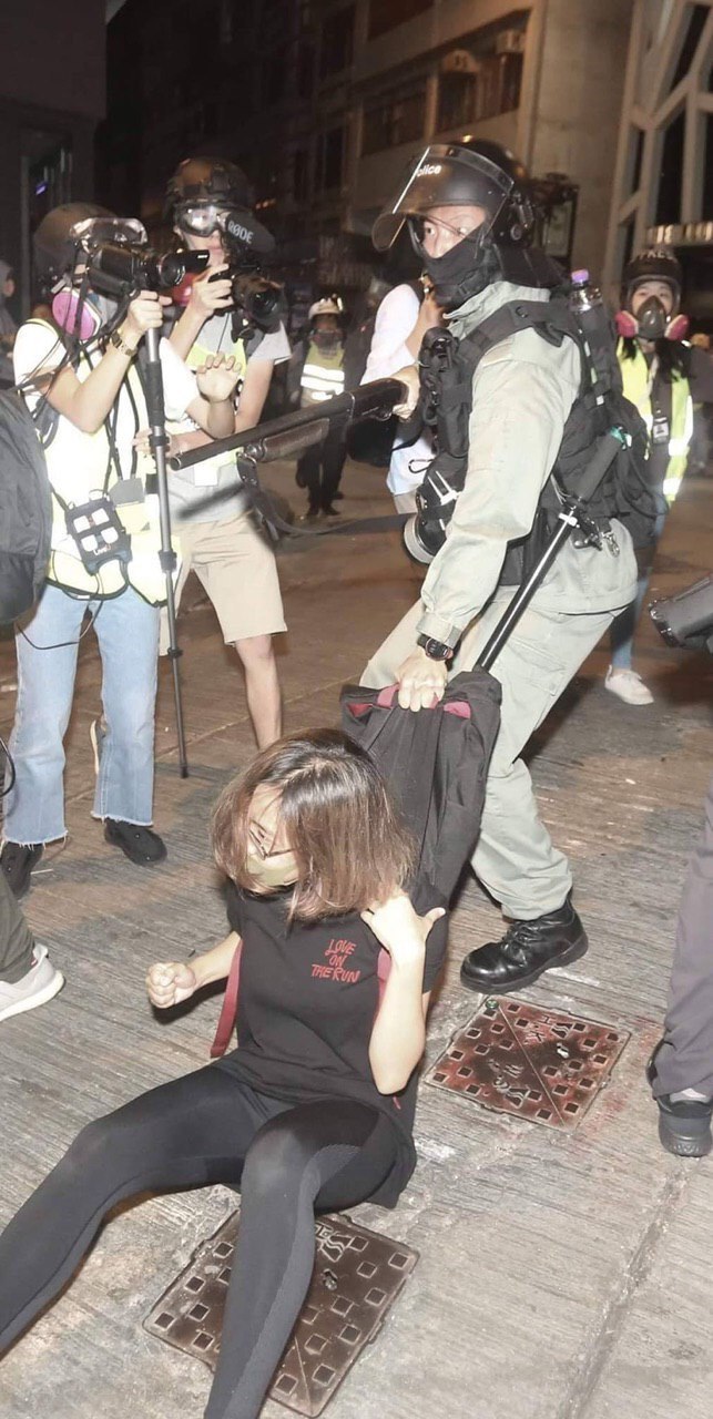 佢曾經係示威現場無理用力拉扯女示威者,見下圖: