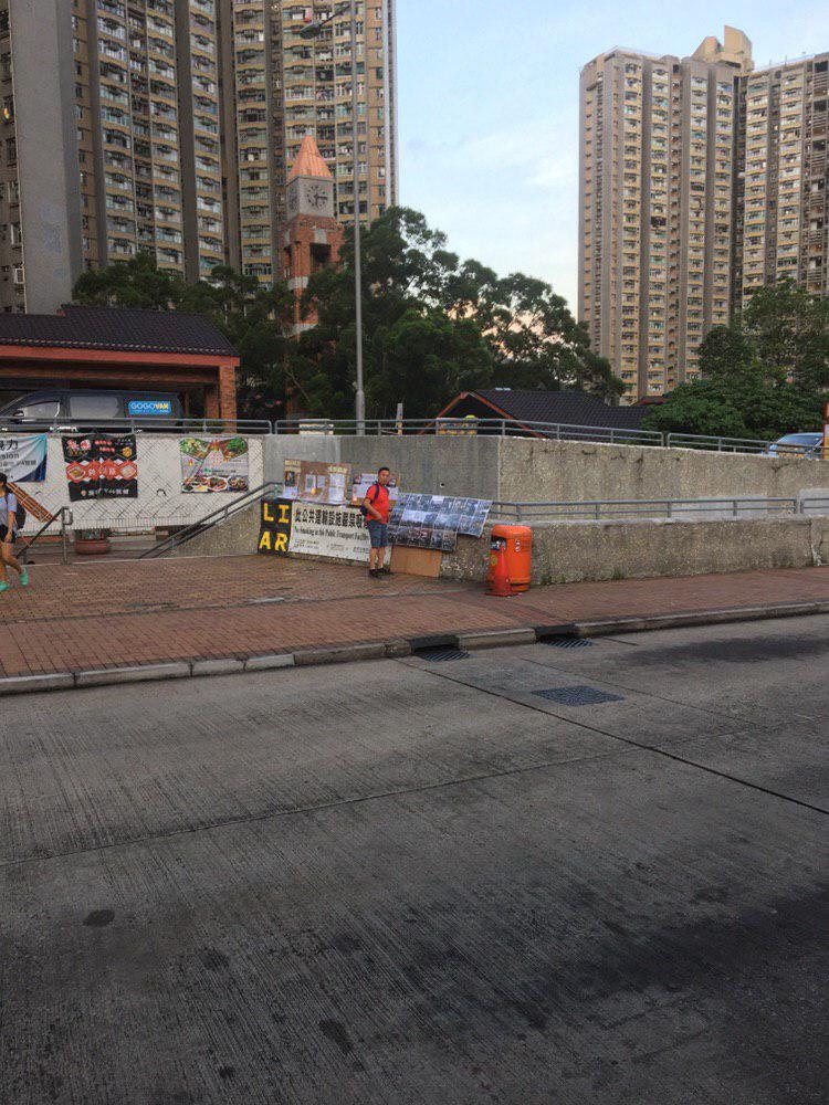 據目擊人士資料,佢曾經撕去葵芳連儂橋上嘅宣傳品。