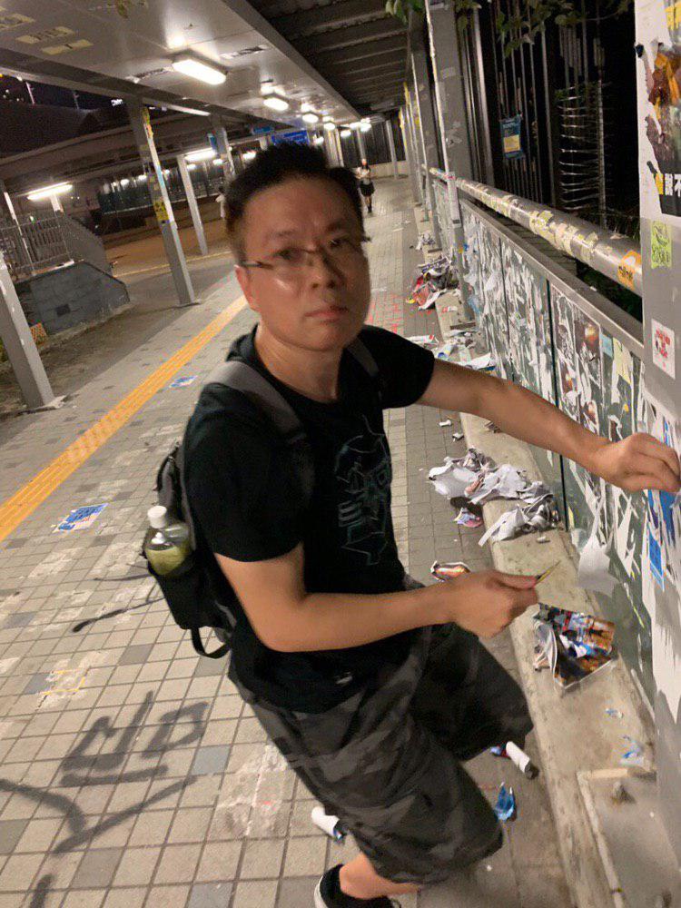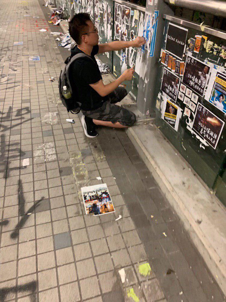 佢曾經撕去貼係筲箕灣明華大廈附近嘅反送中運動宣傳品。