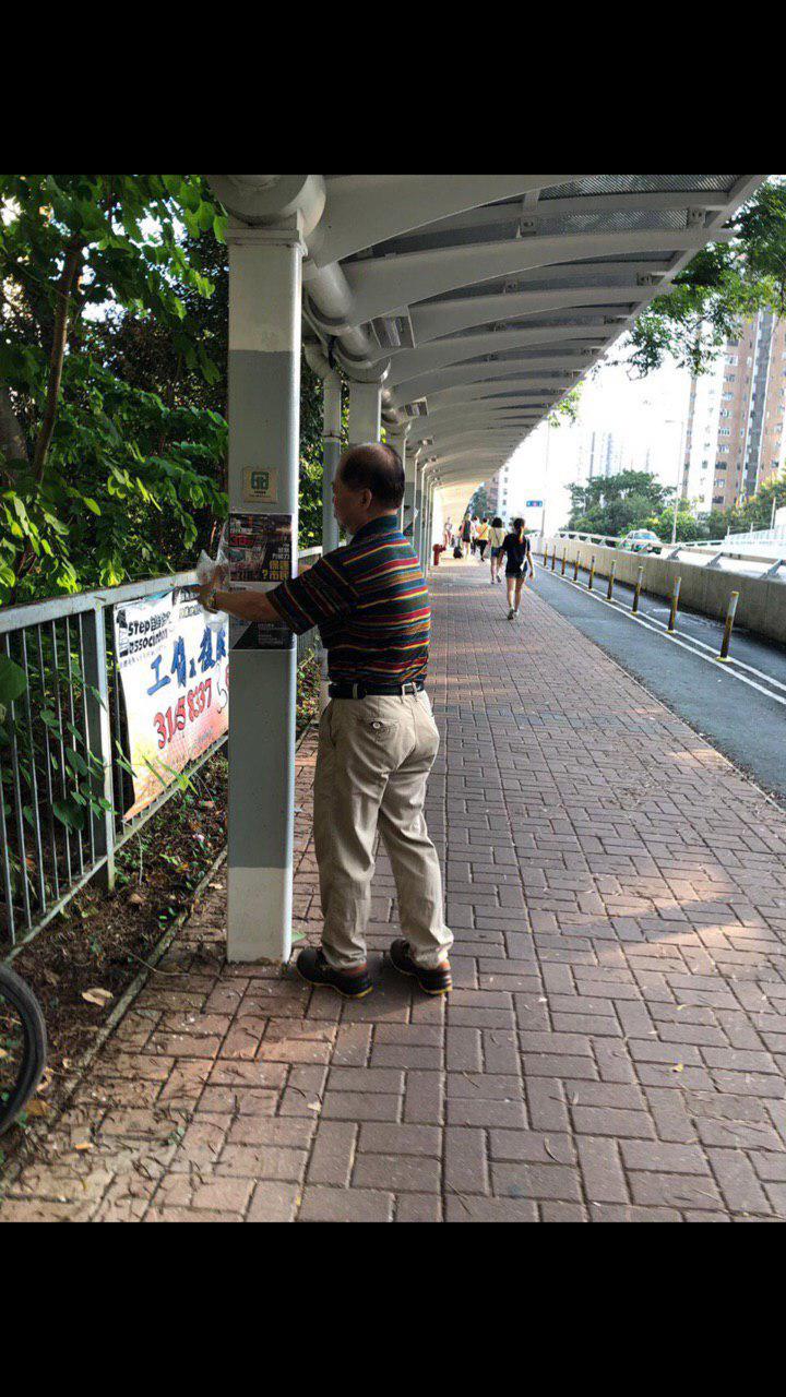 佢曾經北區灣一帶撕去反送中運動相關宣傳品。