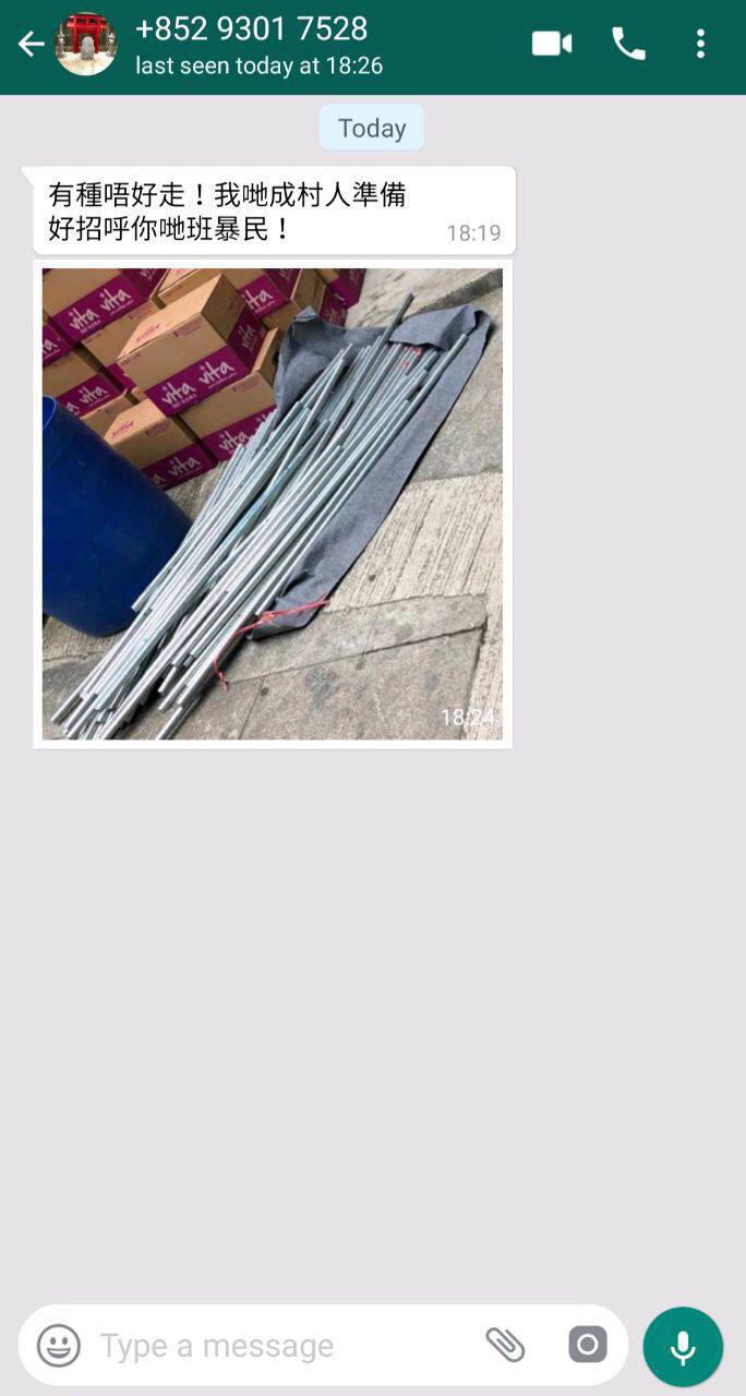 佢曾經使用WhatsApp騷擾反送中運動參與者,並拍攝有大量鐵枝嘅圖片,揚言會襲擊示威者。