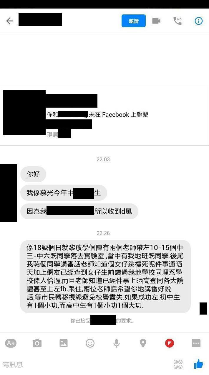 佢有份係Facebook轉發支持元朗恐佈份子及親中嘅言論。