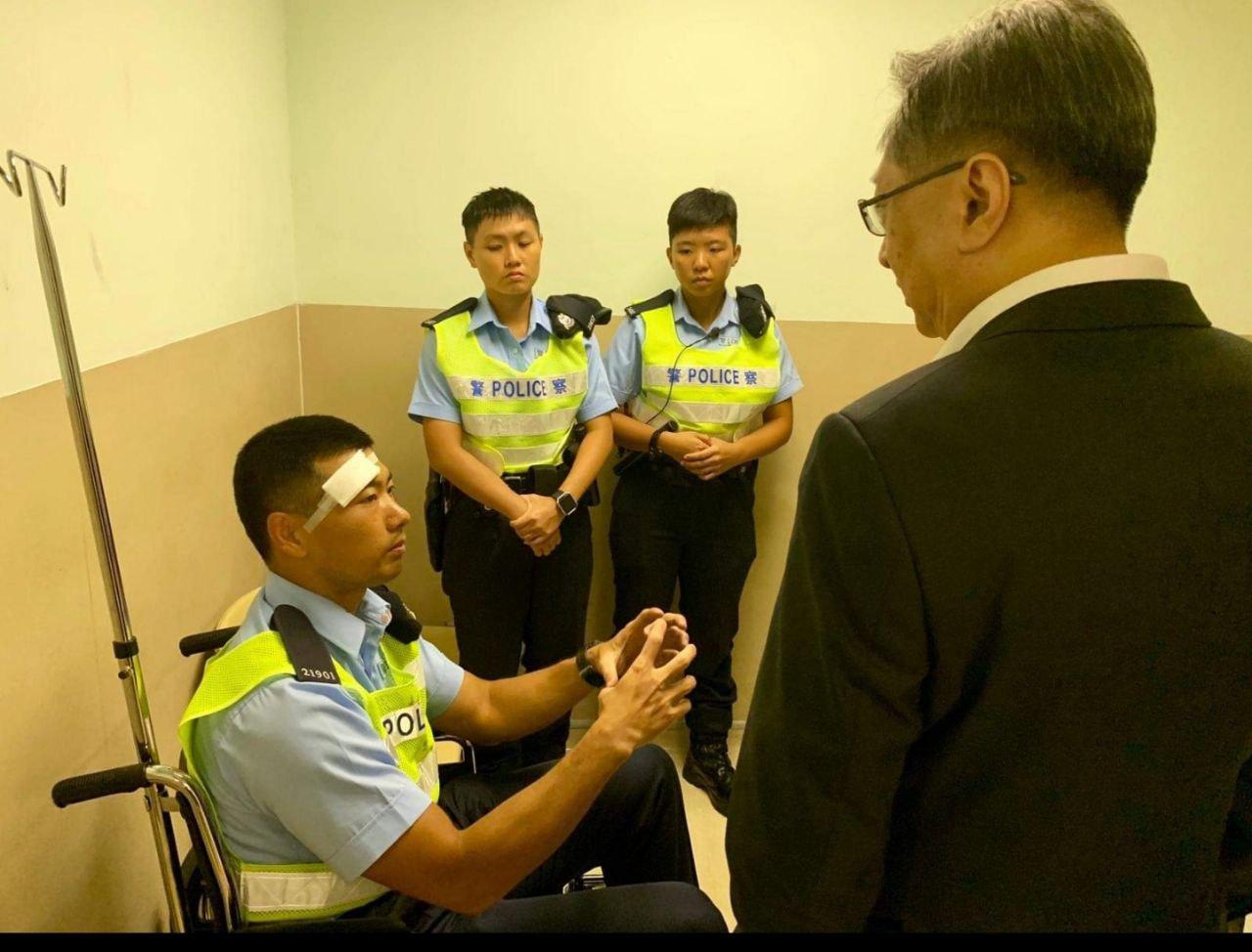 佢曾經係2019年6月9日執勤期間受傷,獲時任警務署署長盧偉聰慰問,見下圖: