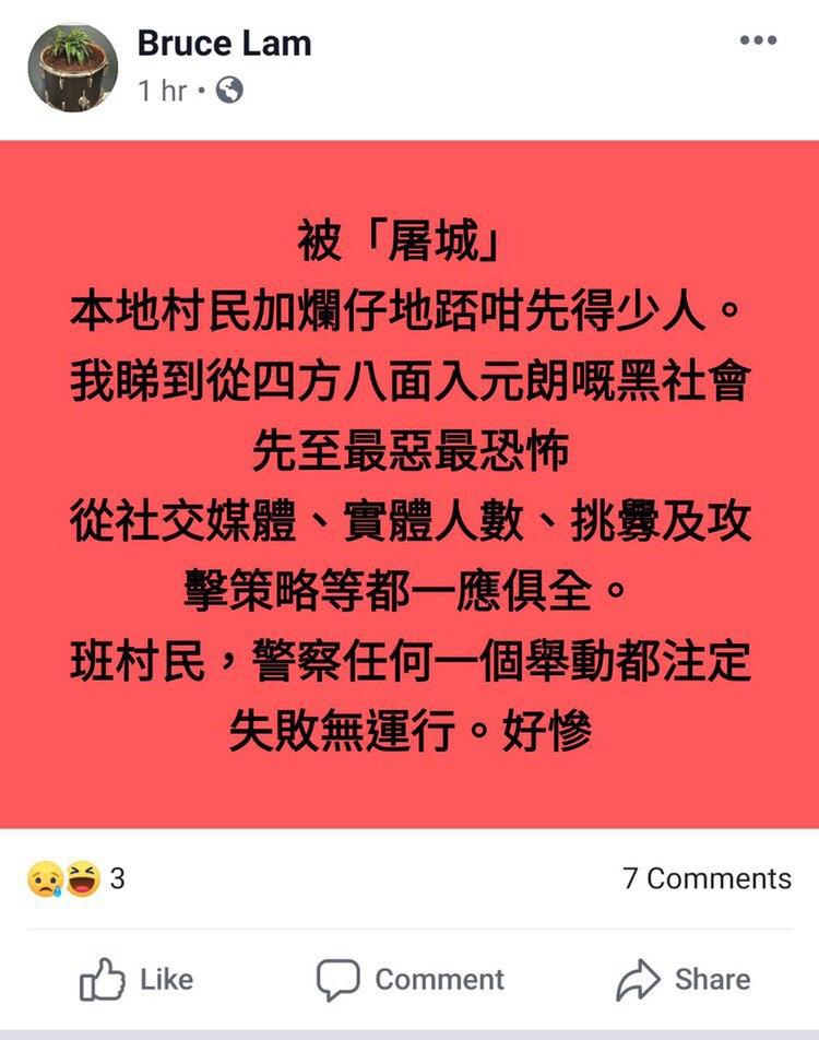 佢曾經多次係Facebook發表支持親中撐警、支持恐佈份子嘅言論。