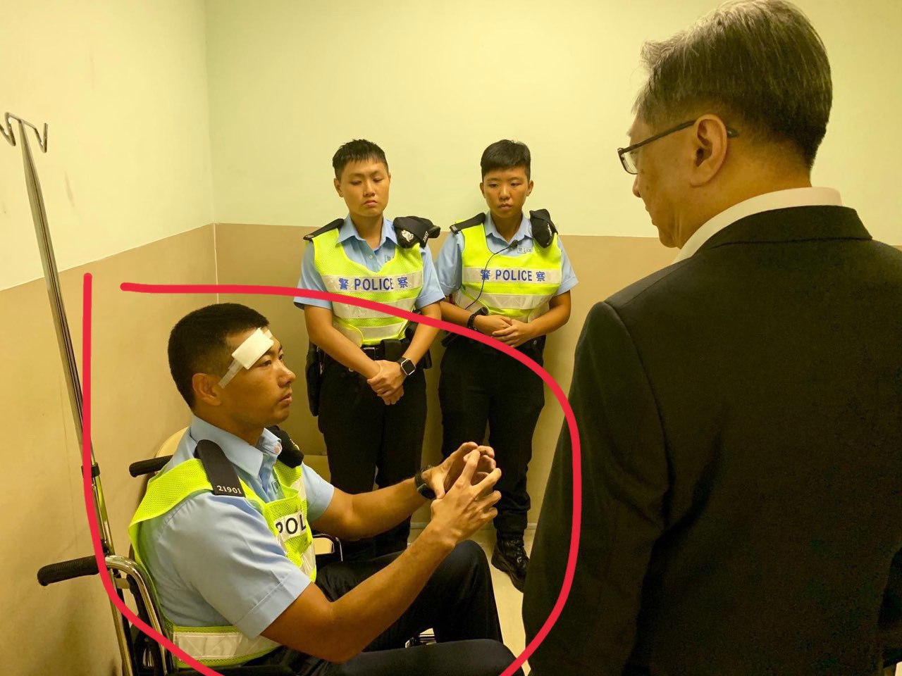 佢係2019-06-09示威期間,因不知名原因而受傷,事後獲時任警務署署長探訪。以下係當時探訪嘅圖片: