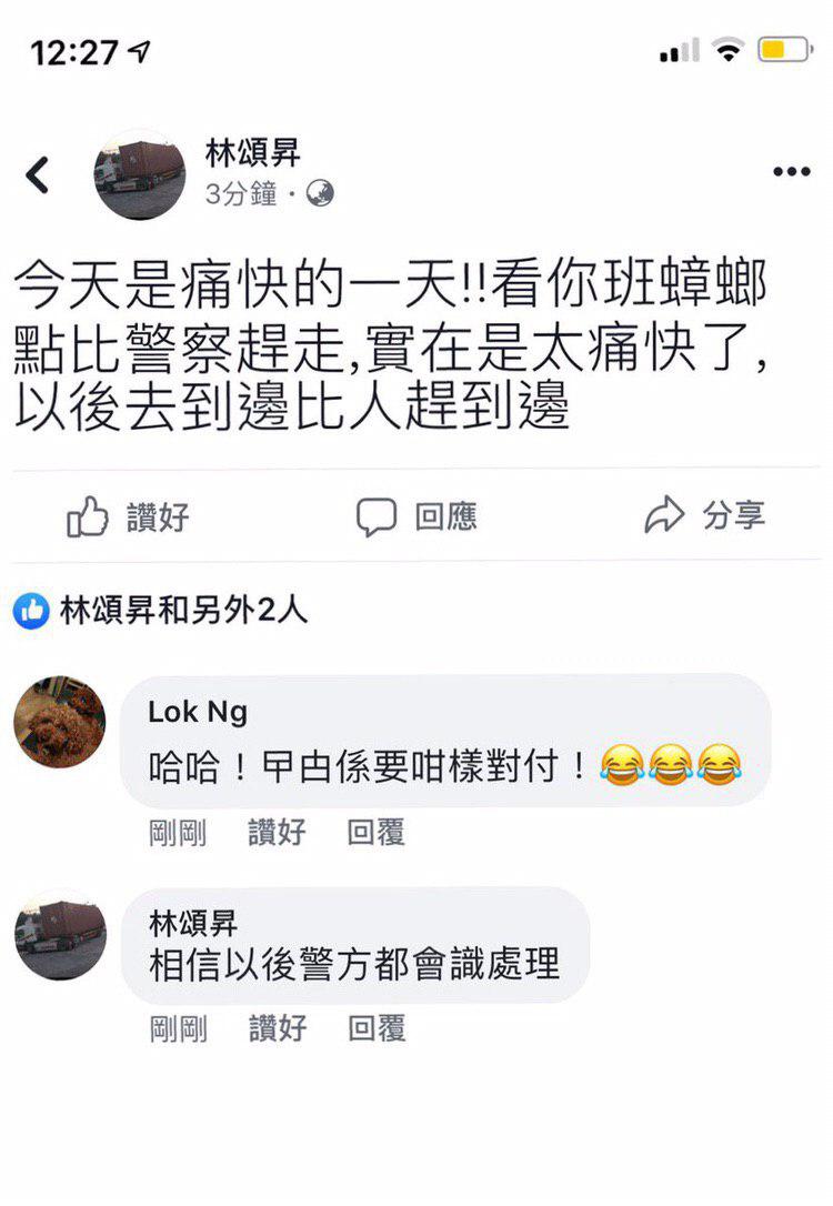 佢曾經係Facebook發表支持香港警察濫權濫捕嘅言論。