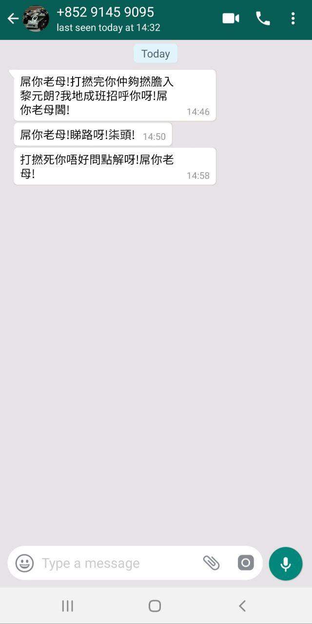 佢曾經使用WhatsApp騷擾反送中運動參與者。