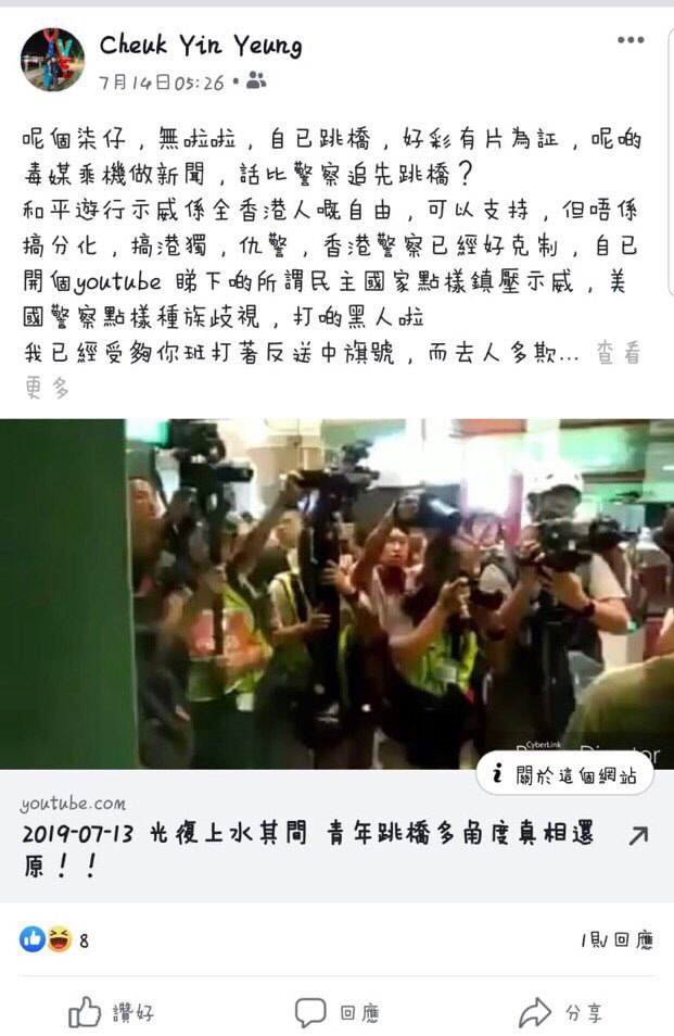Mark Fung係一名撐警藍絲,支持香港警察濫權濫捕並為此歡呼。佢曾經係 Facebook 指示威者係「曱甴」,發表撐警言論,以及親身去撐警大會。以下係佢嘅部份言論: