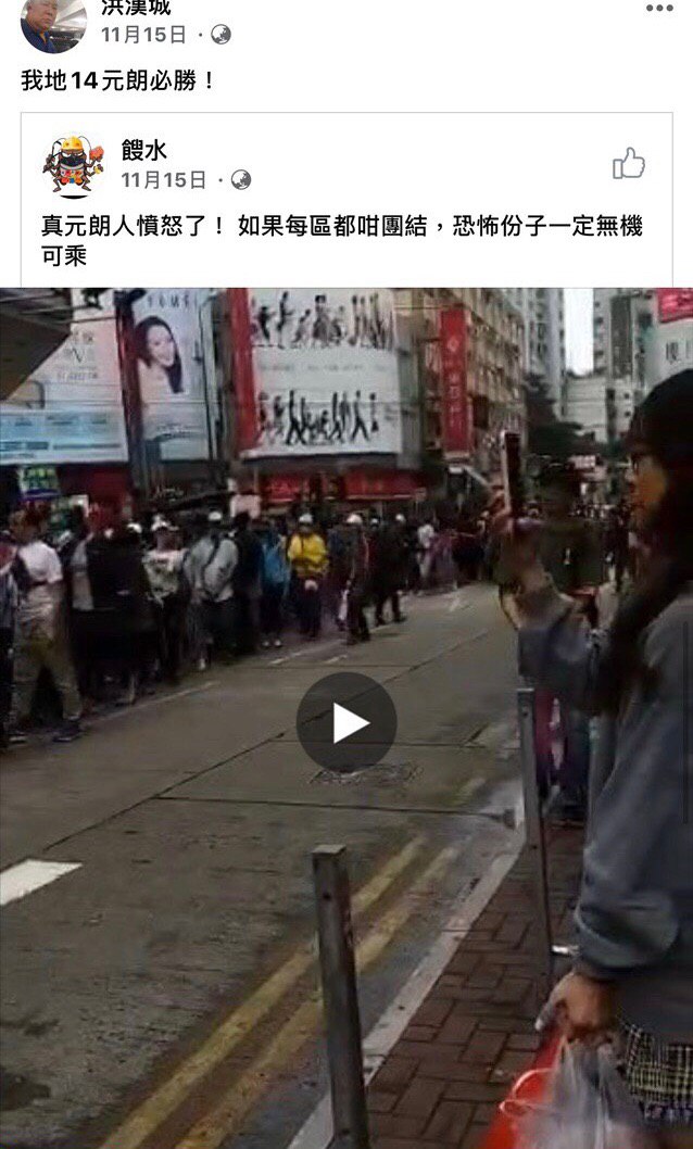 佢曾經聯同黑社會成員,係元朗舉辦支持香港政府及香港警察嘅活動,詳見下圖: