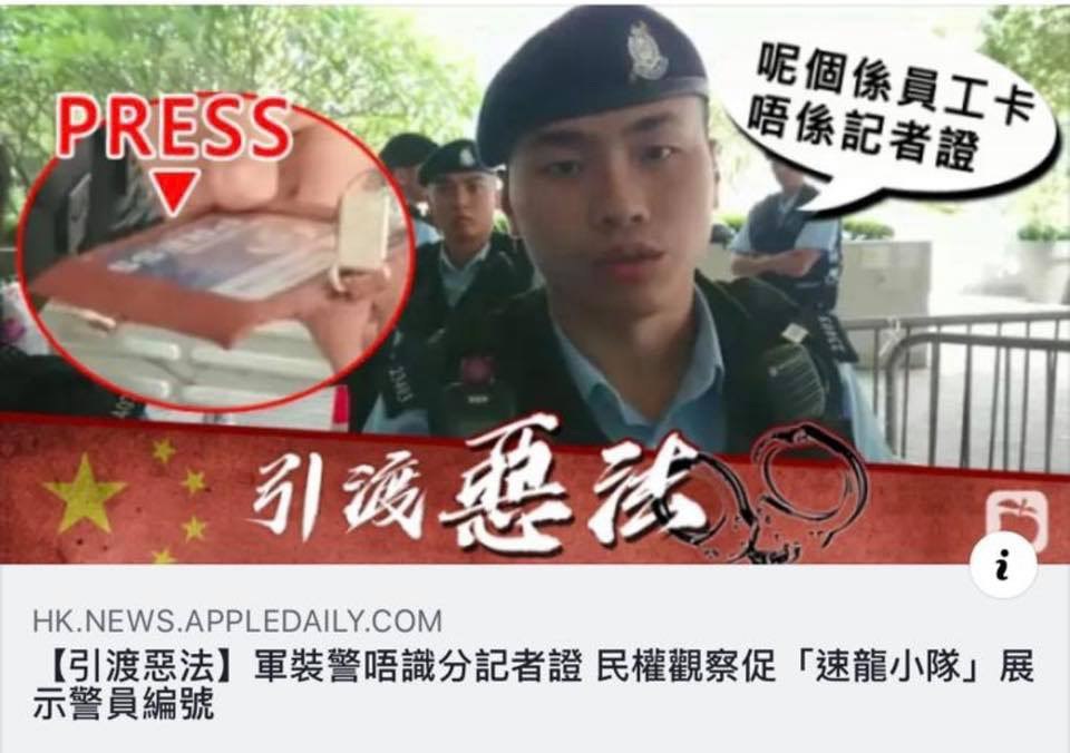 佢曾經係2019-06-12示威現場上,唔識分辨記者證。