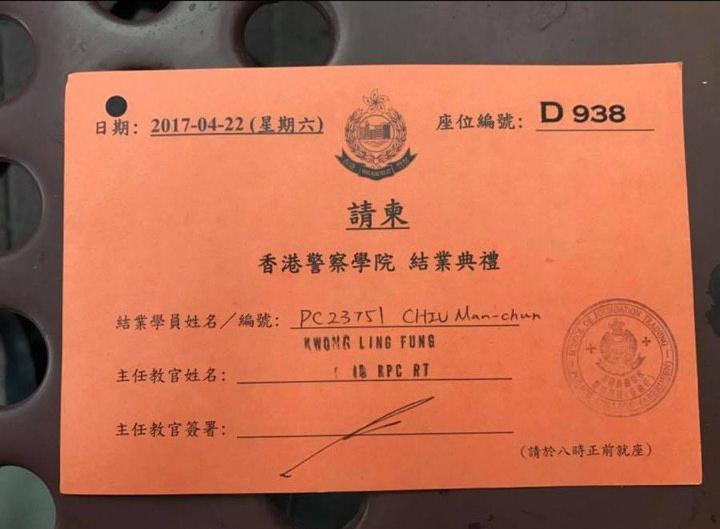 係佢加入香港警察,完成組織內部訓練後,佢曾經做過一排低級成員,然後就俾人推左去報案室做,但佢本人就周圍講因為自己英文勁,所以先比人逼去做。就係2020年初,佢係無辭職情況下竟然可以違反組織規定,染左個藍色頭,懷疑準備混入示威者做臥底,協助香港警察虐待市民。