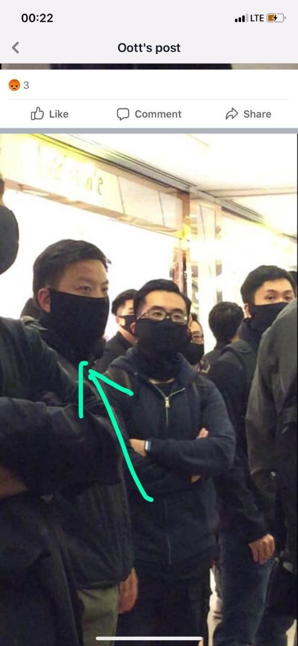 佢曾經係2019-12-21,於尖沙咀海港城蒙面出現,協助香港警察拘捕示威者。以下係佢出現係現場嘅圖片: