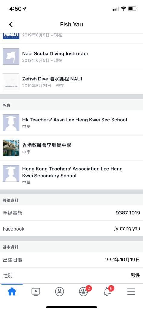 以下係佢自行公佈嘅就業資料,顯示佢有兼職潛水教練賺錢: