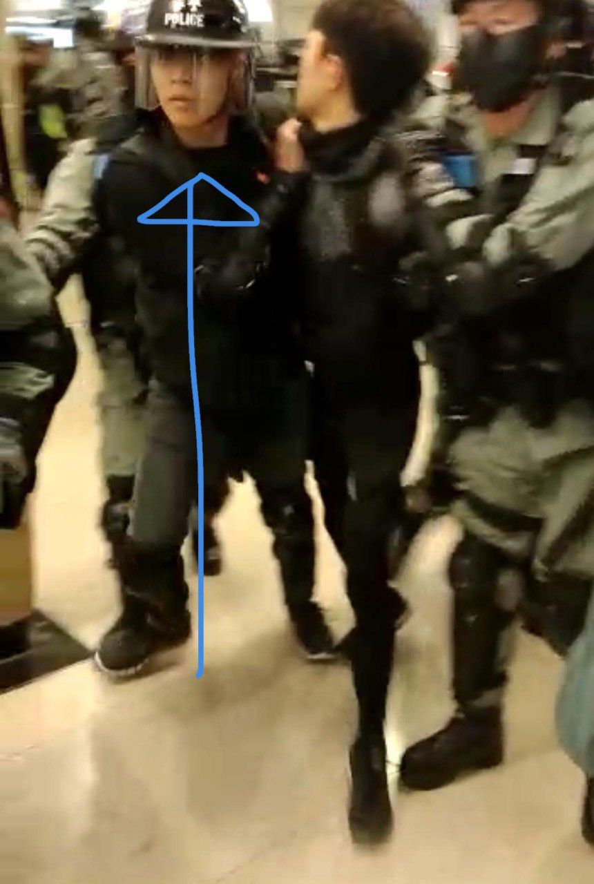 以下係佢身穿香港警察服裝,出現係示威現場嘅圖片: