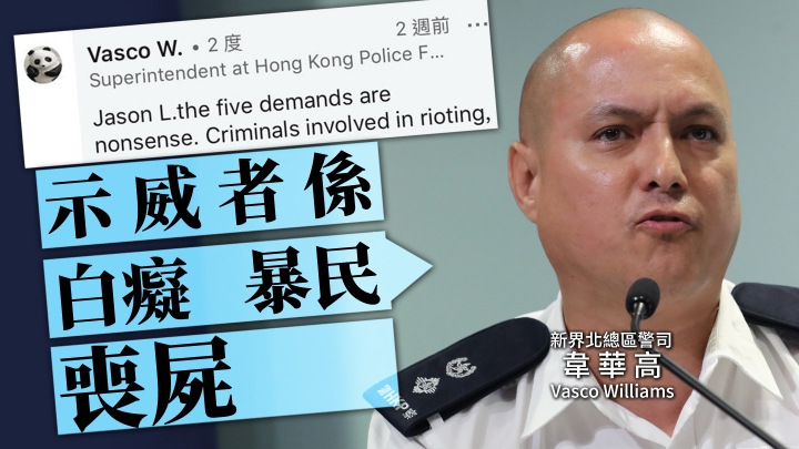 佢曾經係警察記者會上,指大批警察係後巷腳踢嘅示威者只係「一個黃色物體」(Kicking a yellow object)。佢又曾經係Facebook上面指示威者係「白痴、暴民、喪屍」。