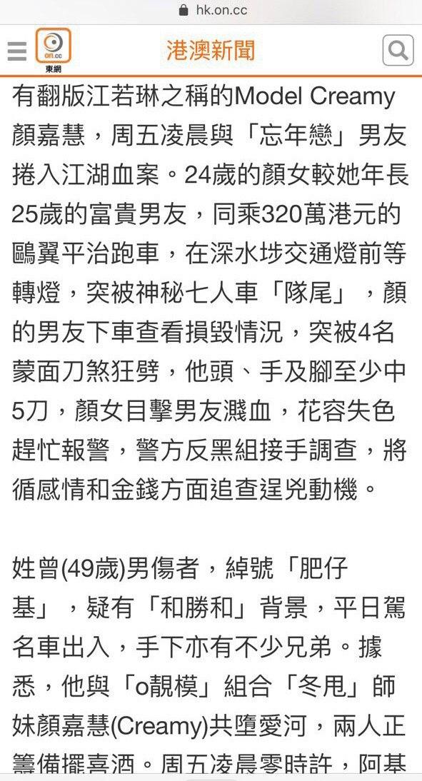 根據讀者資料,佢有黑社會背景,係黑社會和勝和成員「肥仔基」嘅妻子。