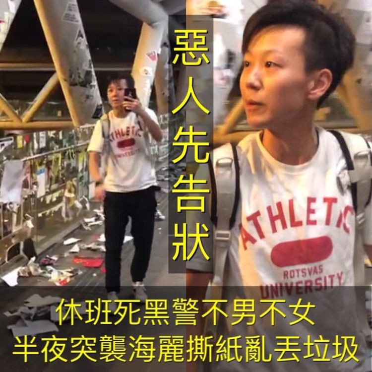 她曾於 2019-09-22 02:15 在屯門海麗天橋破壞連儂牆,並將紙張隨處棄置。被發現後一邊離開一邊用粗言穢語指罵市民,又想取出伸縮警棍恫嚇,最後敗走。
