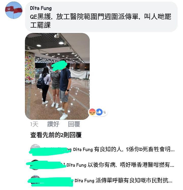 馮慧敏曾經係當值時段,身穿制服撕毁伊利沙伯醫院連儂牆,並且用粗言穢語指罵反對佢撕紙嘅人。佢亦試過偷偷影相及拍片,指控某同事未到收工時間就換衫,令該名同事未獲續約。