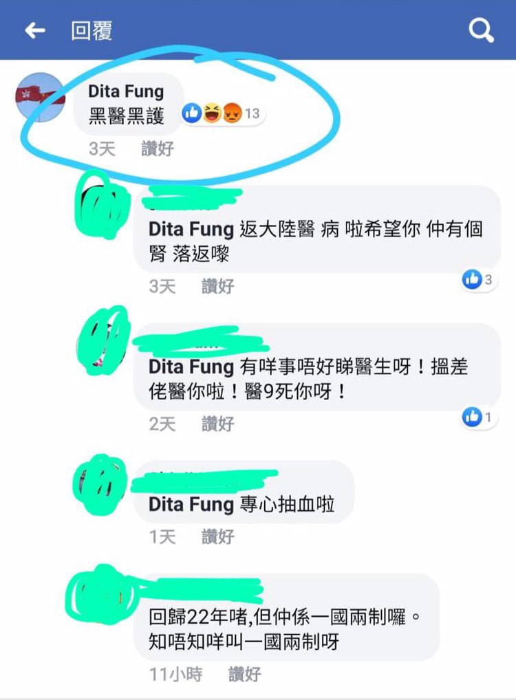 馮慧敏係一名撐警藍絲,支持香港警察使用暴力對待市民。