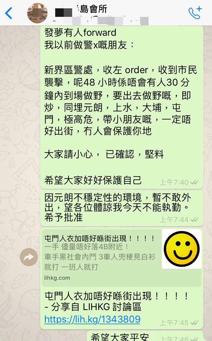 元朗恐襲後翌日,有員工擔心人身安全不敢外出致無法上班執勤。佢無視員工安全,質疑員工缺勤為藉口。又對員工說「我不會為員工上班下班途中因此受傷而負責,你可以唔做既,你話唔做既我地可能接受啦」。